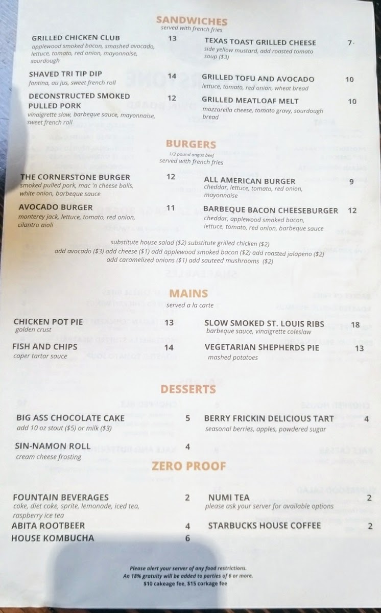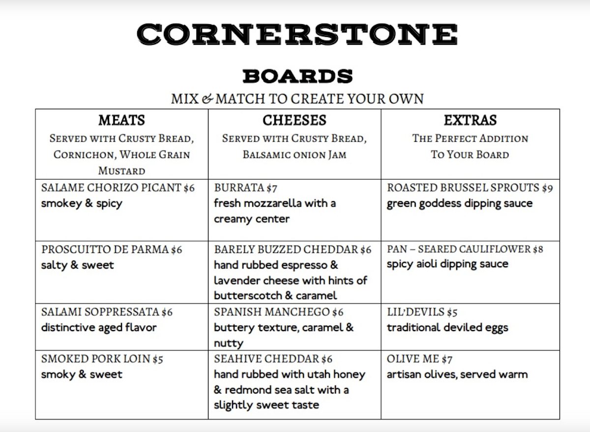 Introducing the Menu at Cornerstone Craft Beer & Live Music